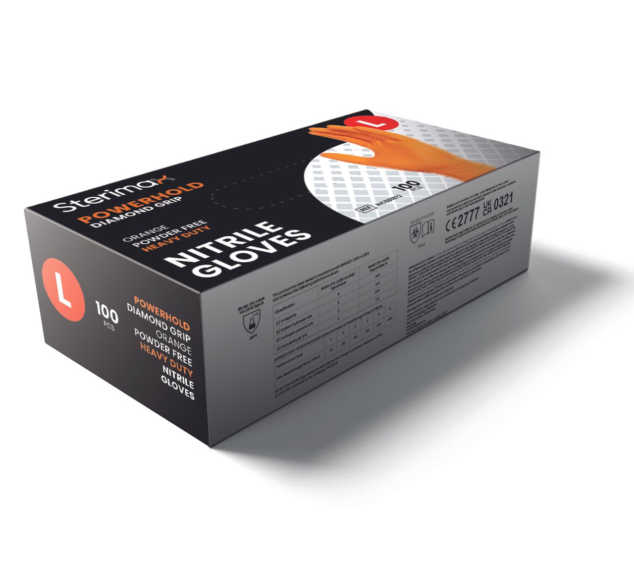 Sterimax Extra Heavy Duty Diamond Grip Ornage Nitrile Gloves Box of 100